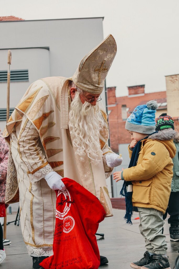 Požeški katedralni trg, Trg svete Terezije Avilske 6. 12. na blagdan sv. Nikole bio je prepun djece, roditelja i obitelji koji su s velikim uzbuđenjem dočekivali svetog Nikolu, u sklopu požeškoga adventa, manifestacije koja se ove godine odvija pod imenom Radost došašća.