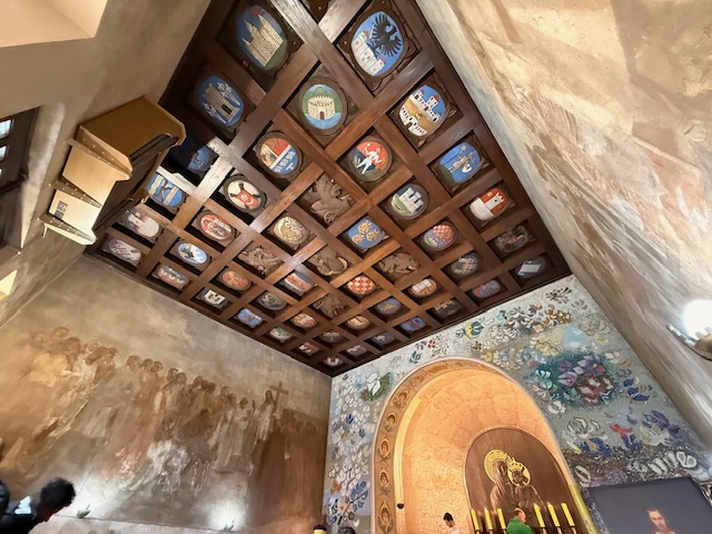 Pažljivo su odabrani i materijali: strop od slavonske hrastovine, oltar od bijelog bračkog kamena, glina za zemljane posude s Petrove gore. Čak je i svileno misno ruho izrađeno po narodnim motivima iz hrvatske povijesti.